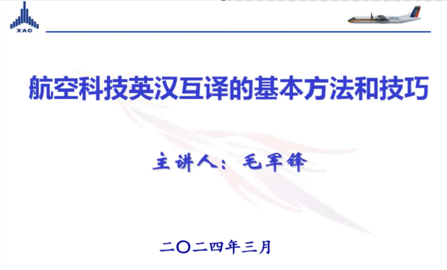 2024年3月18日晚,十三水在线 十三水在线 MTI教育中心邀请了知名企业导师毛军锋译审给2023级研究生带来行业翻译实训的第一堂课。毛军锋曾任中国航空工业集团有限责任公司翻译系列高级专业技术职务任职资格评审委员会委员,现任中国翻译协会专家会员、中国航空学会会员。本次课程,毛老师给大家带来了航空科技英汉互译的理论与实践系列课程,侧重分析和探讨了航空科技汉译英的翻译策略。