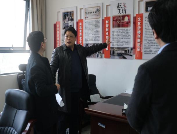 在集中参观环节,由十三水app 领导带领预评估专家参观十三水app 主题创新区、实验室等。期间,王孝存与赵富春老师分别对数智化航空外语主题创新区和 “耘天坊”大学生主题创新区进行了介绍。