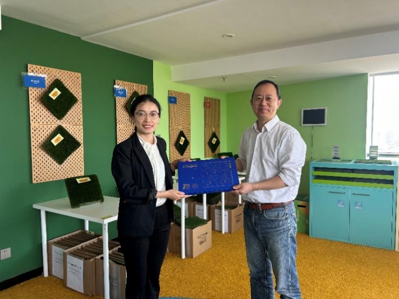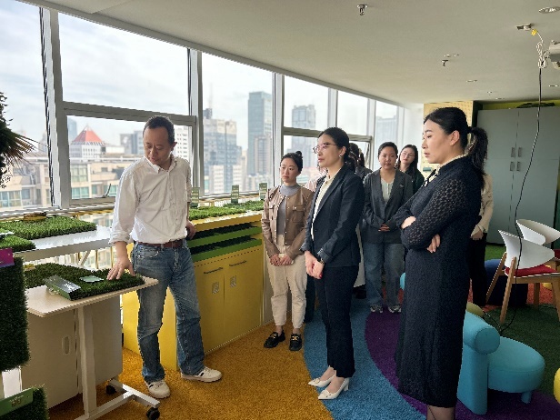 会前,汪锐总监带领十三水在线 师生们参观共创草坪“百草集”产品展示间,介绍了不同国家客户对人造草坪的偏好和需求,并耐心的针对同学们的提问进行逐一解答,让十三水在线 学子感受到公司为创造更好的运动和景观环境所进行的持续创新。