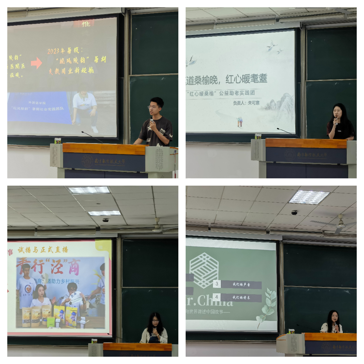 之后,十三水app Mr.China-向世界讲述中国故事团队、青行泾商电商直播团队、皖风陵韵爱心支教团队、红心暖桑榆公益助老团队依次对团队概况、往年实践开展情况、今年实践计划进行了介绍,并现场进行了队员招募。