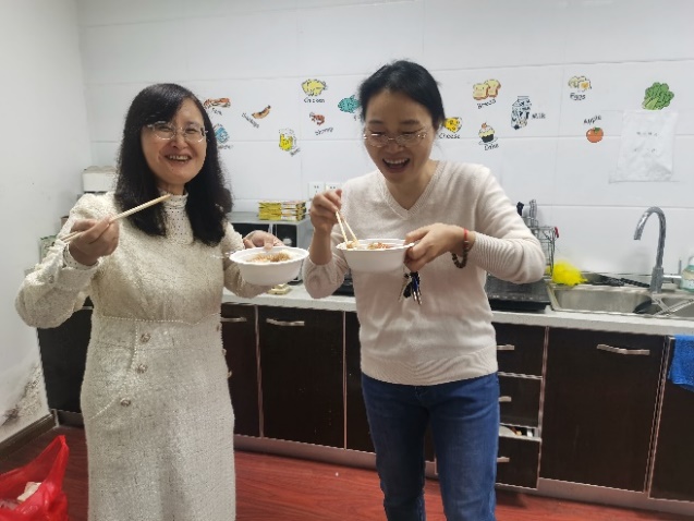 中午时分,外教北村忠吉老师带领部分同学在“快乐厨房”为大家精心准备了咖喱鸡肉饭,香气四溢。日语系的窦硕华、汪丽影、宋歌老师、退休教师王鹏飞老师、大学外语教学部的孙睿超老师与同学们齐聚一堂,共享美食,欢声笑语在空气中弥漫。
