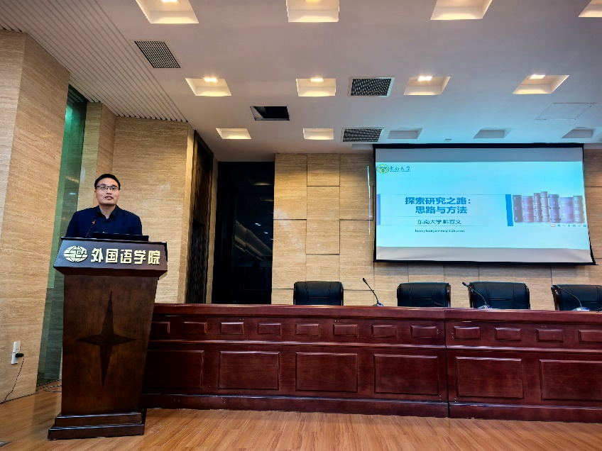 在第二环节,特邀嘉宾、东南大学十三水在线 博士生导师韩亚文教授做了题为《探索研究之路:思路与方法》的学术报告。韩亚文立足自己的研究兴趣和专长,聚焦研究方向确定、研究选题遴选、研究方法采用等内容,对研究生开展学术研究的方法和路径提供了建设性建议。