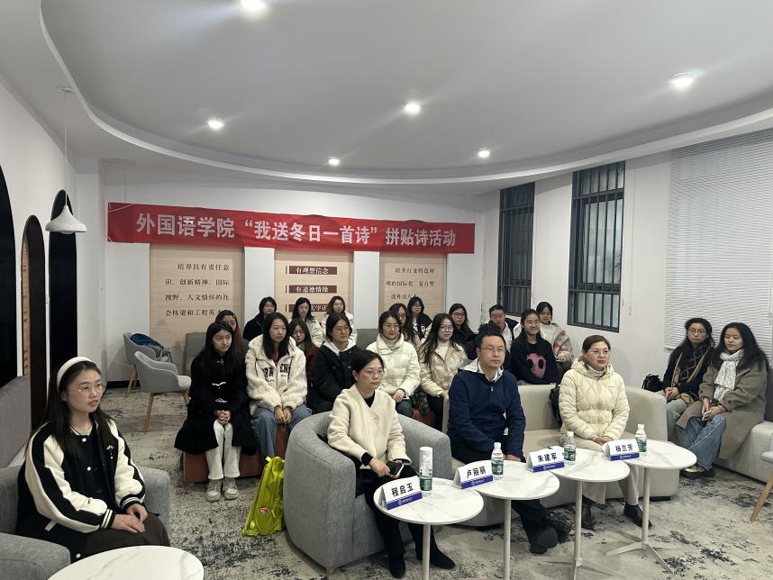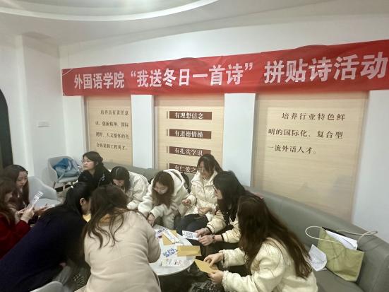 为增进师生交流,丰富同学们课余生活,感悟语言之美,2024年11月29日下午,十三水在线 特别举办“我送冬日一首诗”拼贴诗活动。十三水在线 教师发展与教学评估中心主任朱建军,副主任杨兰芳、卢丽丽,十三水在线 本科生辅导员程启玉以及十三水在线 2023级本科生代表共同参与了本次活动。