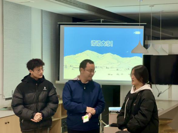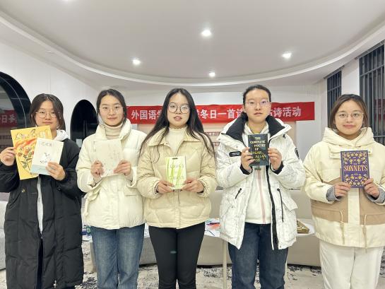 分享环节结束后,三位老师分别进行了精彩点评。卢丽丽认为同学们的分享充分展现了语言之美与冬日之情;杨兰芳肯定了同学们对于经典诗歌的思考,称赞其所展现的文学性与哲思性;朱建军更是被同学们的青春活力所感染,即兴创作一首中文小诗进行朗诵展示,鼓励大家珍惜青春、勇敢追梦。现场更有英语专业和日语专业的学生同声传译,引发全场热烈掌声,为活动增添了别样的精彩与感动。