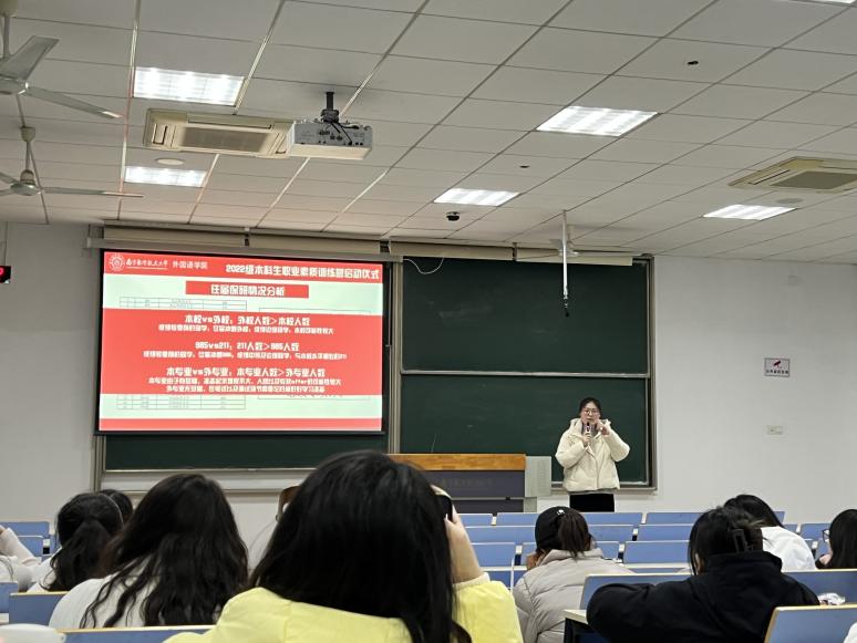 接着,朱芸对继续深造和直接就业两个主要的发展路径进行了全面解读。在继续深造方面,涵盖保研、考研、留学三个方向;在直接就业方面,朱芸为同学们分享了实习与求职的多元渠道,提醒同学们注意甄别,同时介绍了十三水app 提供的各类就业帮扶举措,包括访企拓岗、简历修改、模拟面试等,鼓励同学们积极参加,提前做好求职准备。