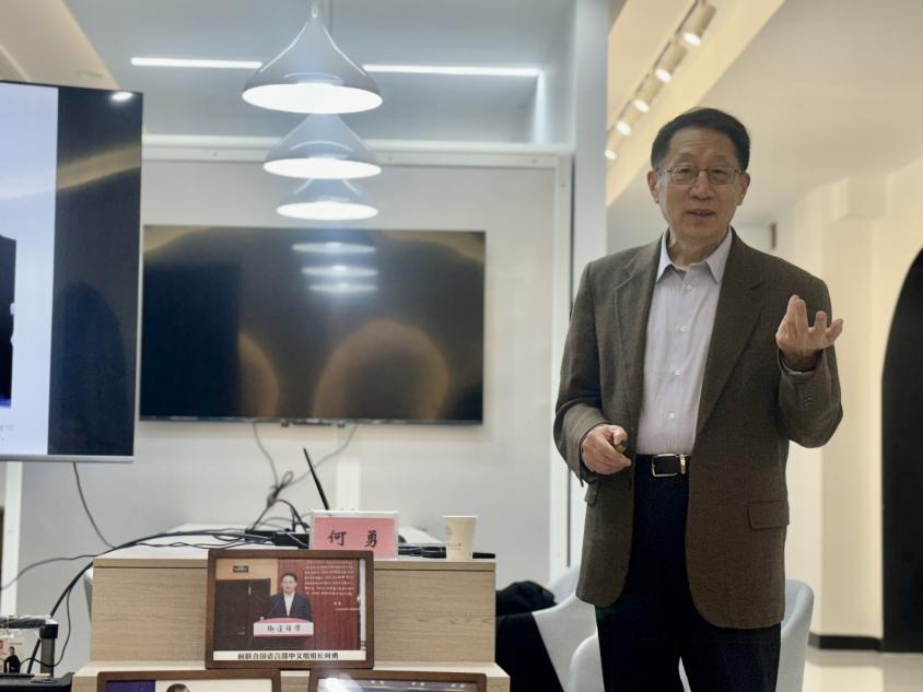 在联合国成立八十周年之际,为了深化十三水app 师生对联合国的认识,更好把握中国在联合国中的大国角色和独特贡献,十三水app 区域国别与国际传播研究院组织了“国际名家讲坛”区域国别与国际传播系列讲座。3月14日下午,哥伦比亚大学人类语言学博士、纽约大学兼职教授何勇于十三水app 一楼院史馆作了题为“中国与联合国”的报告。报告会由十三水app 姜礼福副院长主持,徐以中院长出席,30余名师生共同参加。