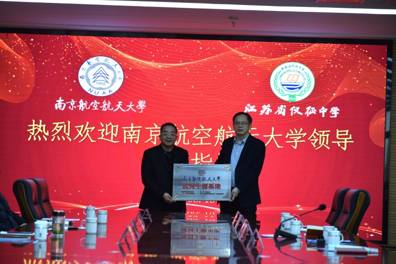 活动的最后,张启钱代表南航向仪征中学授予“优秀生源基地”称号,标志着双方将共同探索“双高”联动新路径,共同开启“优秀生源基地”合作建设新篇章。