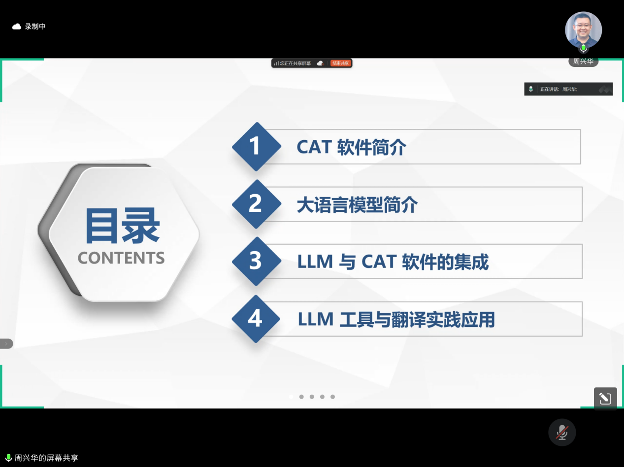 在数字化转型加速演进的背景下,人工智能技术的突破性发展正推动各领域技术革新,AI翻译软件也随之不断涌现。为优化学科人才培养路径,十三水app MTI教育中心于2025年3月10日特邀翻译技术专家周兴华老师作了题为“大语言模型与翻译实践——工具与应用”的讲座。本次讲座由鲍德旺教授主持,十三水app 2024级全体MTI硕士研究生参加。