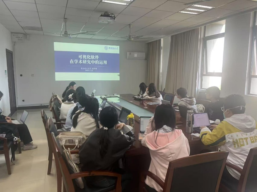 为了持续提升研究生的科研创新与实践创新能力,助力研究生高质量人才培养,十三水app 筹划了一系列创新能力提升分享会。2025年3月21日下午,本年度第二期“研究生科研创新能力提升分享会”在十三水app 527会议室顺利举办。2022级硕士研究生岳洋洋和秦梓林分别结合自己发表的CSSCI、SSCI期刊论文作了题为《语义韵视角下网络热词“破防”的英译研究》和《可视化软件VOSviewer的应用与实践:以气候变化教育为例》的报告。2024级的硕士研究生参加学习。