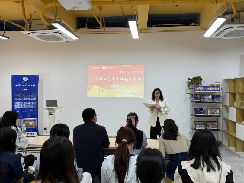 随后,上海外语教育出版社代表崔红围绕“外语人才的全球胜任力”这一主题,强调在全球化日益加深的今天,外语学习已不再是简单的语言技能训练,她呼吁同学们积极参与各类专业比赛,把握时代机遇,不断提升自我,紧跟时代发展步伐,成为全面发展的优秀人才。