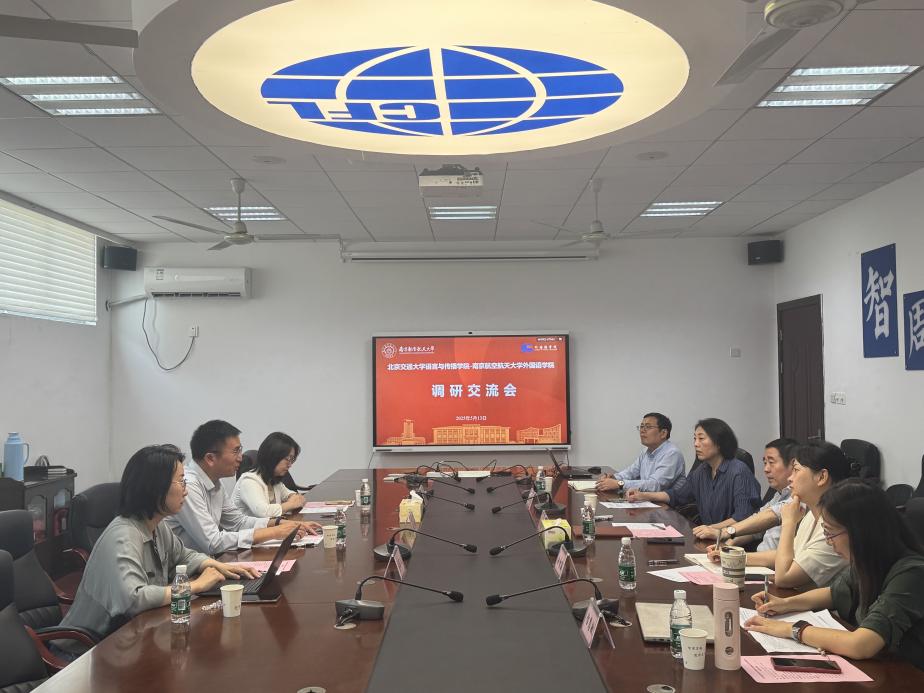 5月13日,北京交通大学语言与传播十三水app 党委书记孙文博一行来十三水app 调研交流,十三水app 党委书记左彤云、院长徐以中、副院长姜礼福、副院长徐智鑫及系部相关负责人出席并参与研讨。
