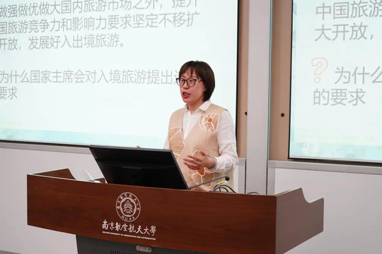 活动中,长期从事文旅行业的资深专家、中国国旅(江苏)国际旅行社有限公司入境中心总经理周焱为同学们解析了当前我国发展入境旅游、实行240小时过境免签政策的背景下,旅游行业对于导游人才、尤其是外语语种人才的需求。