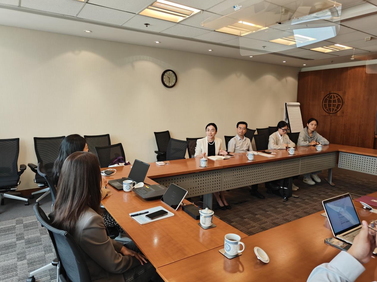 世界银行驻华代表处对代表团一行的来访表示热烈欢迎。会议伊始,矫英莉、周洛伊详细介绍了世界银行集团的组织架构、资金运作模式与项目管理机制,分享了世界银行如何通过技术、知识产品和资金支持,推动各国实现可持续发展目标。同时,围绕减贫战略、青年赋能、绿色发展、知识共享、跨国合作等议题,与代表团进行了深入交流。