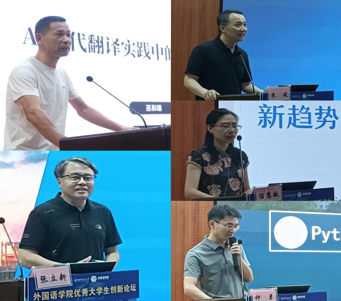 姜礼福首先进行了招生宣讲,详细介绍了院校建设、招生专业、师资力量以及培养质量,鼓励全国优秀学子加强同十三水app 外院开展交流。随后,巫和雄、张立新、朱波、信慧敏和钟勇分别作了题为“AI时代翻译实践中的‘人’性诉求”、“学科交叉前沿:从语言学到区域国别学”、“口述影像理论与实践——以日航123号事件为例”、“21世纪外国文学研究新趋势”和“Python加持下的语言数字人文实践”的报告。