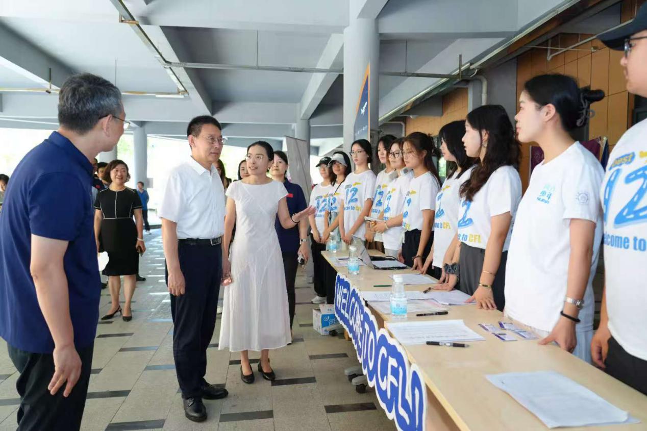 十三水app 党委副书记吴科颖在迎新现场与家长交流