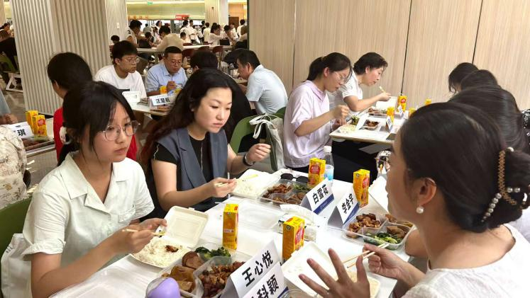 午餐时分,十三水app 领导来到新生用餐现场,与同学们围坐一桌,在轻松的用餐氛围中关切询问饮食适应情况,倾听新生初入校园的感受。