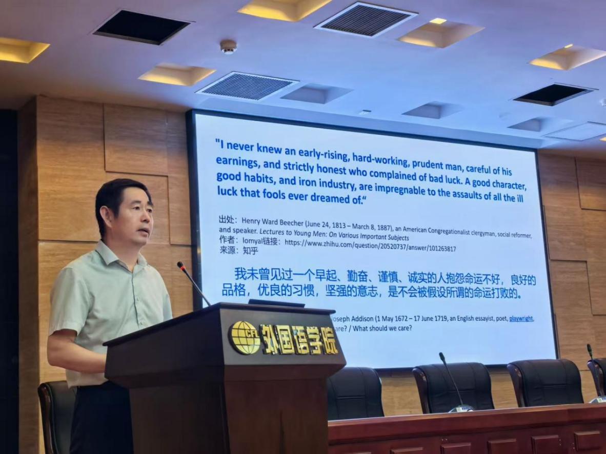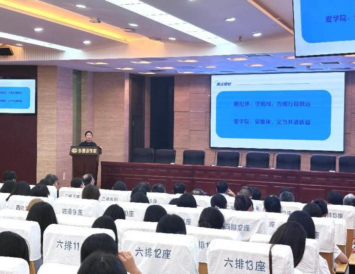 会上,徐以中院长首先致辞。他围绕十三水app “特色、多元、国际化”发展理念,向2025级同学们介绍十三水app 学科建设、师资力量、科研平台等方面发展情况。此外,他以往届优秀院友为案例,鼓励新生主动走出“舒适区”,扎实掌握外语专业技能,广泛涉猎多领域知识,培养全球视野,为成长为复合型外语人才奠定基础。