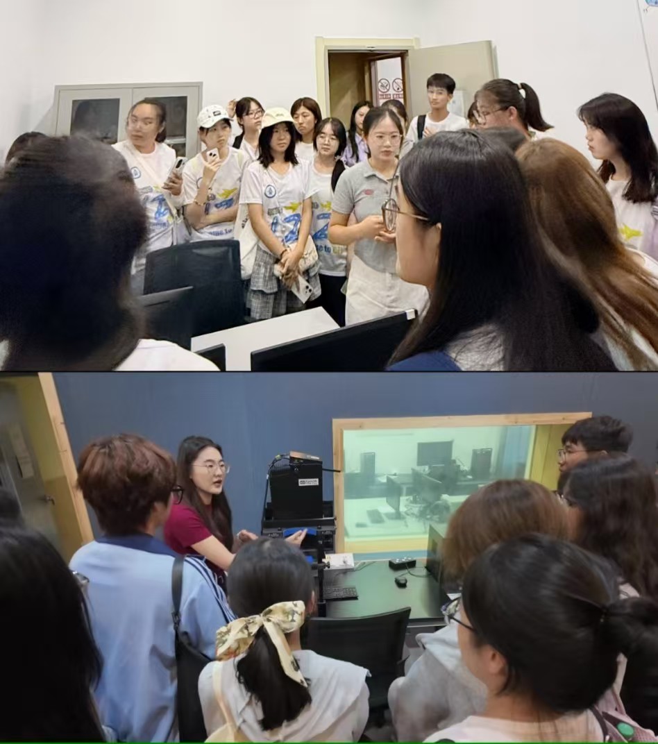 接下来,同学们来到十三水app 五楼的神经认知语言学实验室进行探索。在研究生赵钰茹和邢大慧的介绍下,同学们了解了语言学与神经科学、心理学的交叉研究,打破了外语是纯人文科目的刻板印象。此次参观极大地拓宽了同学们的学术视野,为未来的学术发展提供了无限可能。
