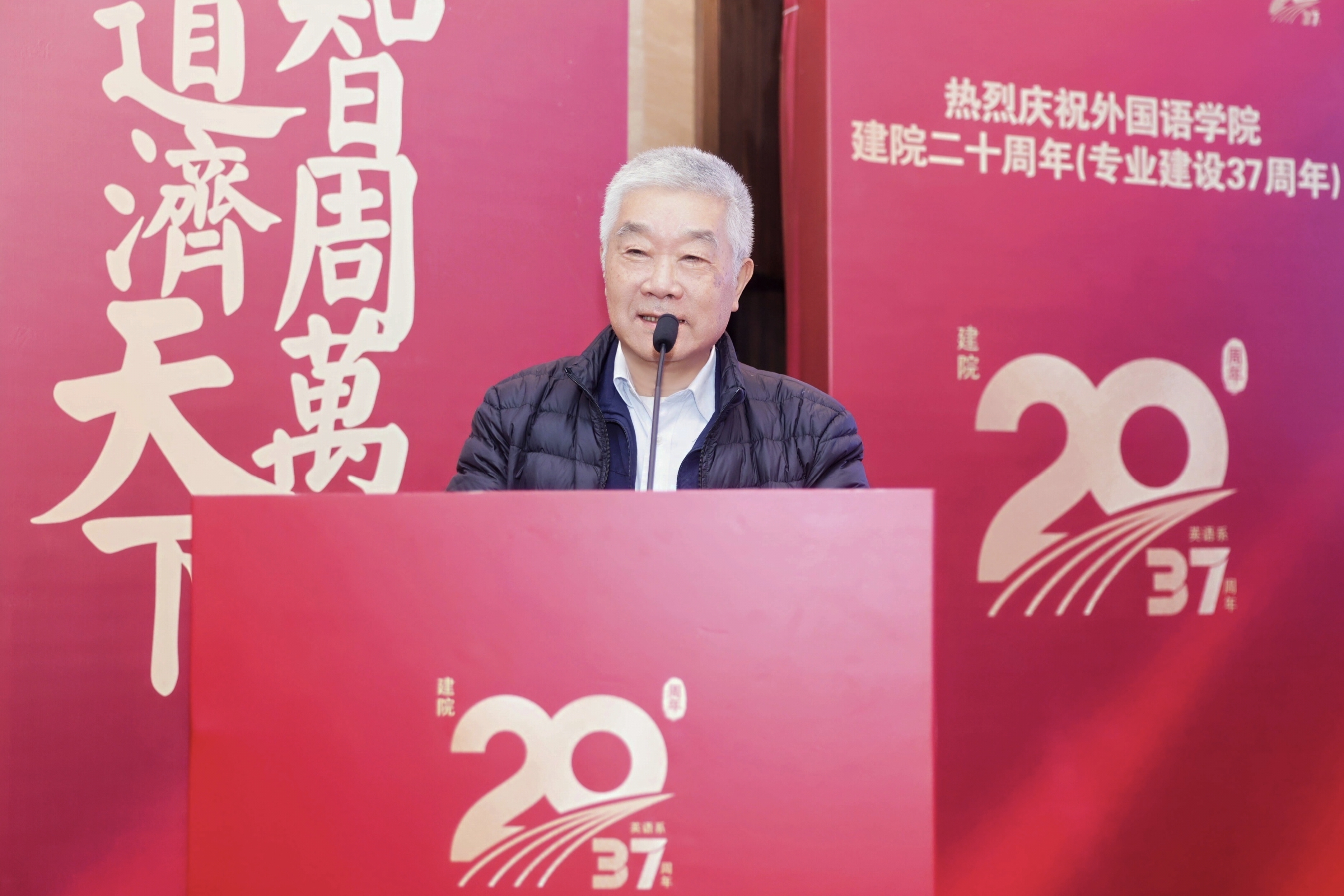 十三水app 老领导代表吴鼎民教授作为十三水app 发展的贡献者和见证者,回顾了十三水app 二十载筚路蓝缕、薪火相传的办学历程,向所有为十三水app 发展倾注心血的师生、校友表达了深切敬意与感谢,并鼓励全院师生创造新的辉煌,为十三水app 的发展与国家的战略需求贡献外语智慧与力量。