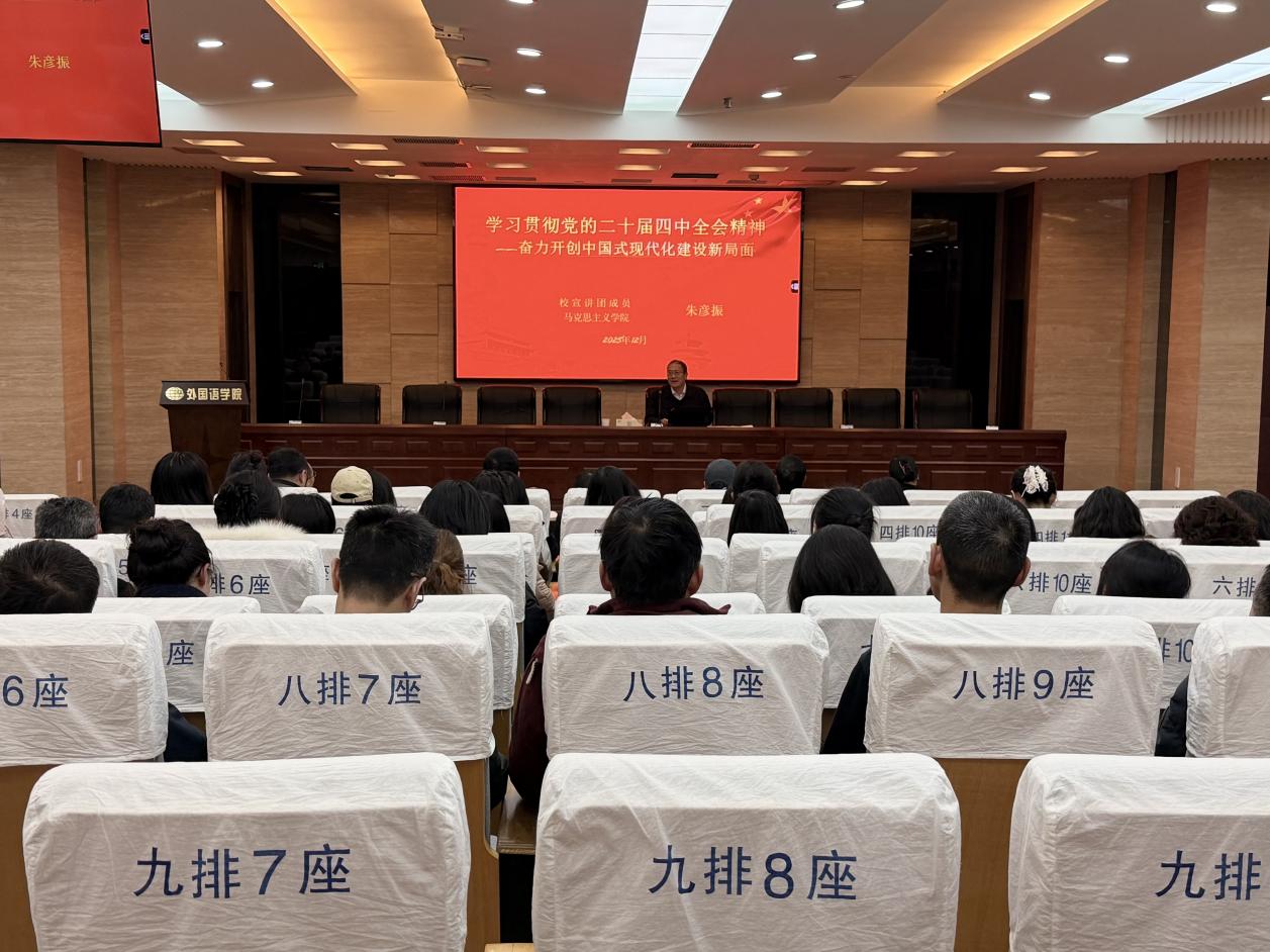 为深入学习贯彻党的二十届四中全会精神,12月26日,十三水在线 举行学习贯彻党的二十届四中全会精神校内宣讲团报告会。本次报告会邀请校内宣讲团成员、马克思主义十三水在线 朱彦振教授作辅导报告。十三水在线 全体领导班子成员、教职工参会学习。报告会由十三水在线 党委书记庄群华主持。